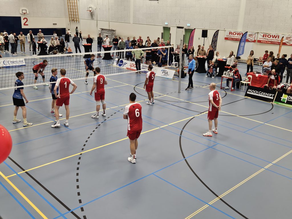 Het hoogtepunt van de dag was de wedstrijd van ROWI Heren 1 tegen koploper Hajraa HS1. De tribune was goed gevuld en in de zaal zelf waren eveneens veel supporters aan tafels rondom het veld aanwezig, wat zorgde voor een indrukwekkende ambiance. Heren 1 begon sterk en pakte set één met 25-18. In de tweede set ging het lang gelijk op, maar ROWI verloor nipt met 22-25. De derde set eindigde in 21-25, waarna Hajraa in de vierde set met 17-25 de overwinning veiligstelde. Ondanks het 1-3 verlies hield ROWI uitstekend stand tegen de koploper, mede dankzij de luidruchtige steun van het publiek.